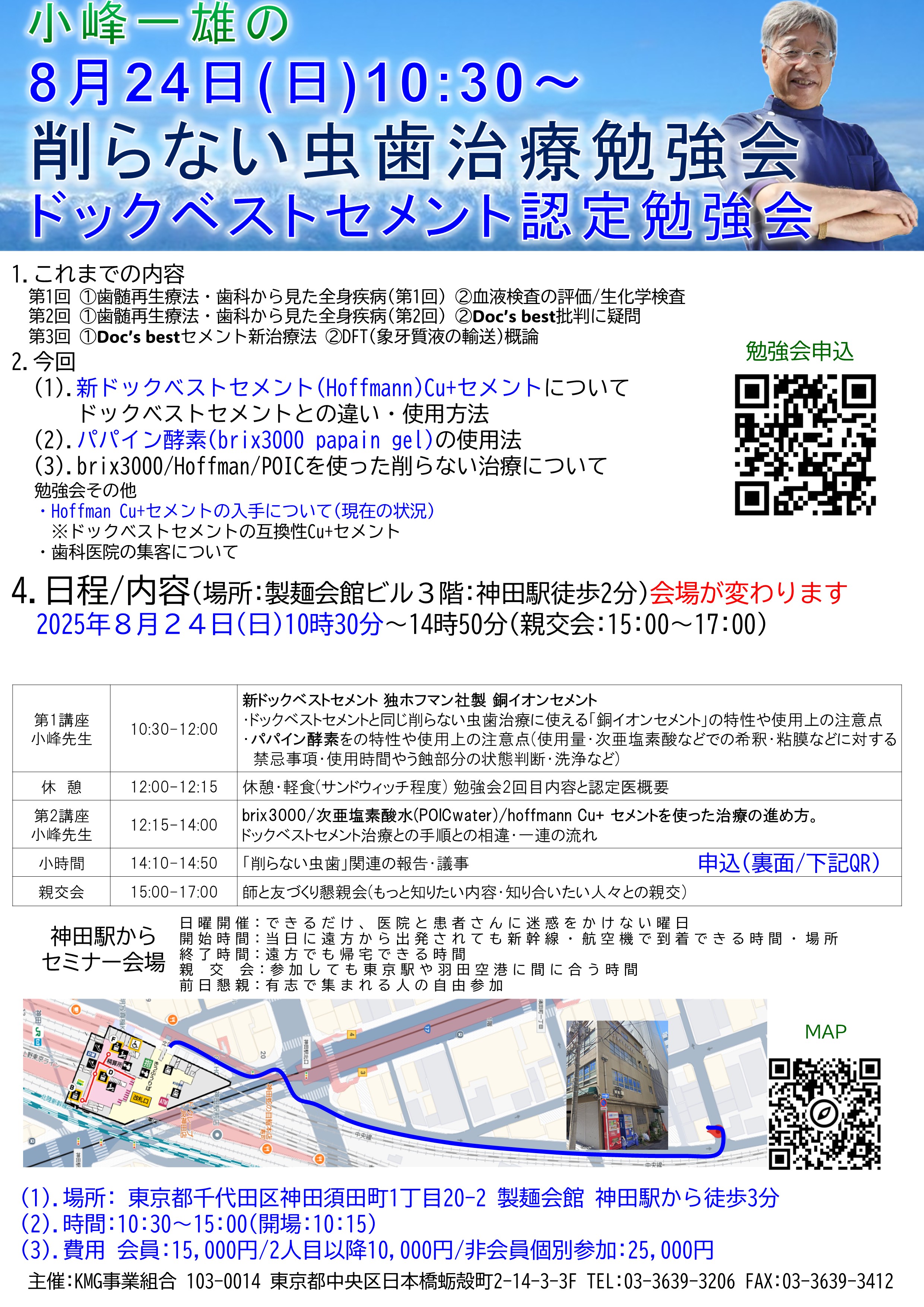 「削らない虫歯治療」認定医説明・勉強会申込み 20242024.1111.111120252025.0707.1414削らない勉強会2025年8月24日(日)開催認定医勉強会申込はこちらKMG入会申込■チラシ・申込書ダウンロードパソコンでご確認ください。[2025年8月24日(日)開催] 認定医勉強会申込はこちら